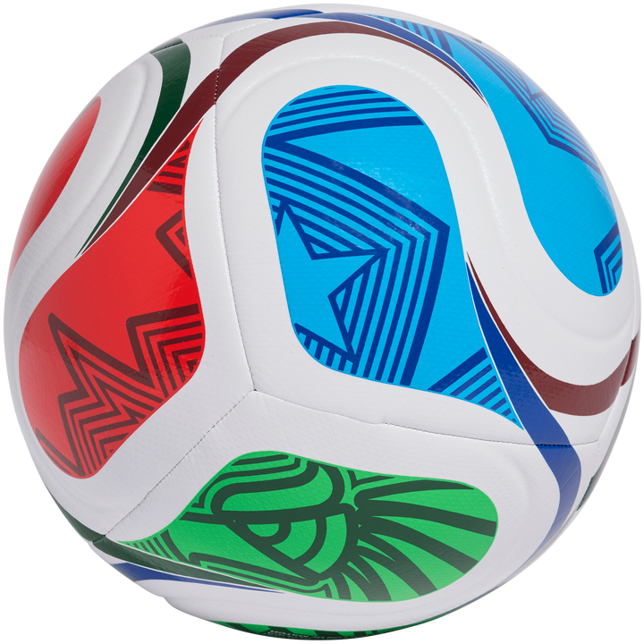 Sharpen your skills with the adidas Trionda Training Ball, designed to echo the look of the official FIFA World Cup 26™ match ball. Inspired by the flowing “La Ola” wave seen in stadiums across the Americas, this six-panel design combines vibrant graphics and national symbols from the three host nations. Built for durability and value, its machine-stitched construction, textured surface, and reliable butyl bladder make it perfect for both training sessions and recreational play.