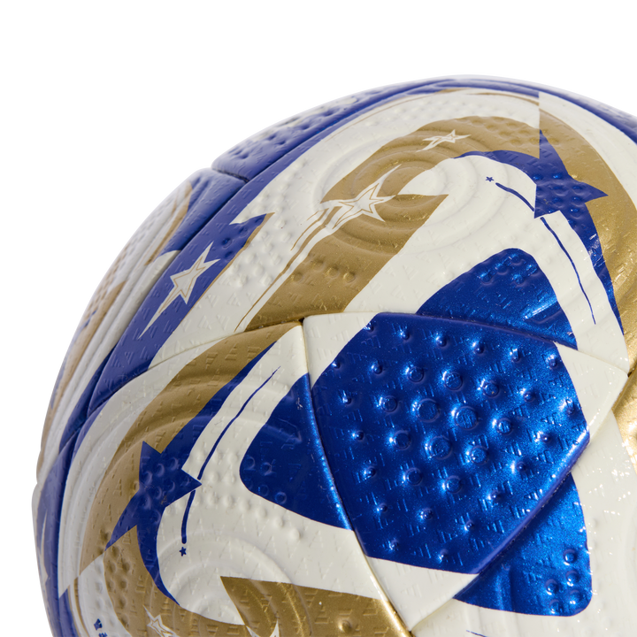 When the Mundial de Clubes FIFA reaches its latter stages, the world's best teams will play with this special adidas football. Adding golden colours and metallic accents to the ball used earlier in the competition, it shows off a suitably classy look. As with every Pro ball, it combines a seamless construction with a high-grade butyl bladder for world-beating performance.