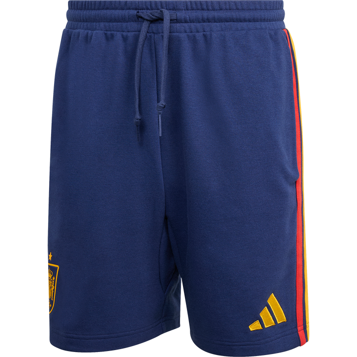 The Spain DNA shorts deliver football legacy in a clean, everyday silhouette. Designed for fans, they balance sport-inspired energy with a versatile shape for comfort on and off the pitch. Soft French terry keeps the feel light and breathable—ideal for downtime, warmups or casual wear. The mid-rise waistband adds structure, while the adjustable drawcord gives a personalised fit. Finished with Performance branding and the Spanish crest, they channel adidas confidence in a relaxed look that keeps football culture front and centre.