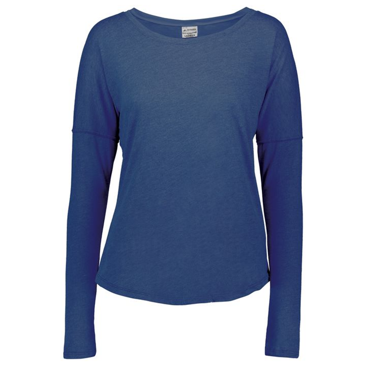 The Augusta Women's Lux Tri-Blend Long Sleeve Tee was created to be an extra-soft, stylish sportswear shirt. Featuring a scoop neck collar and dropped shoulder sleeves, this shirt is sure to have a comfortable fit and give you a full range of motion. A perfect combination of polyester, cotton, and rayon provides breathability to keep you cool all day long.